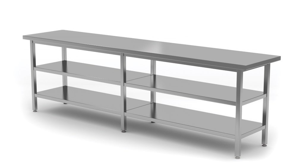 Standardowo nasze wyroby wykonane są ze stali nierdzewnej AISI 430, a elementy narażone na najsilniejsze działanie środków chemicznych i organicznych wykonujemy ze stali nierdzewnej tzw. kwasówki AISI 304. Wszystkie nasze meble mogą być również w całości wykonane z tego materiału, dopłaty do standardu AISI 304 zostały podane każdorazowo przy meblu.