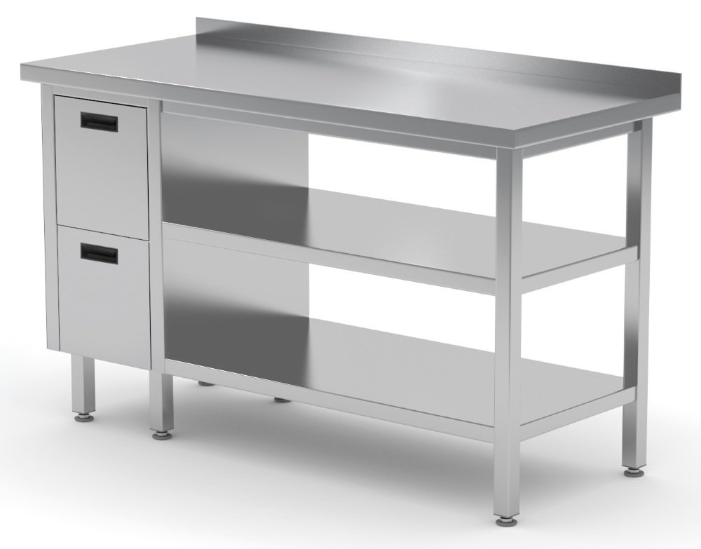 Standardowo nasze wyroby wykonane są ze stali nierdzewnej AISI 430, a elementy narażone na najsilniejsze działanie środków chemicznych i organicznych wykonujemy ze stali nierdzewnej tzw. kwasówki AISI 304. Wszystkie nasze meble mogą być również w całości wykonane z tego materiału, dopłaty do standardu AISI 304 zostały podane każdorazowo przy meblu.