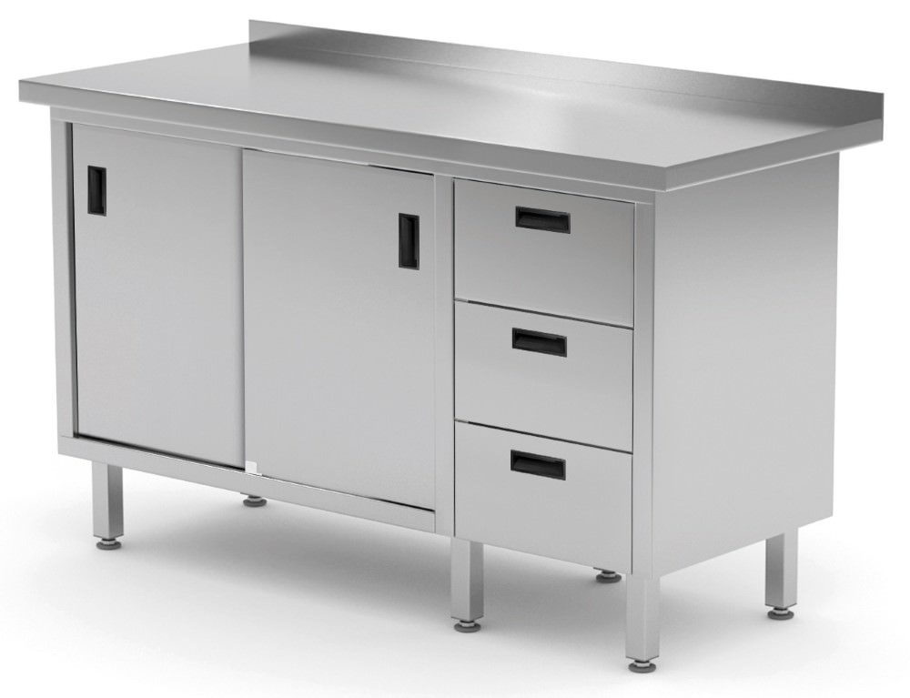 Standardowo nasze wyroby wykonane są ze stali nierdzewnej AISI 430, a elementy narażone na najsilniejsze działanie środków chemicznych i organicznych wykonujemy ze stali nierdzewnej tzw. kwasówki AISI 304. Wszystkie nasze meble mogą być również w całości wykonane z tego materiału, dopłaty do standardu AISI 304 zostały podane każdorazowo przy meblu.