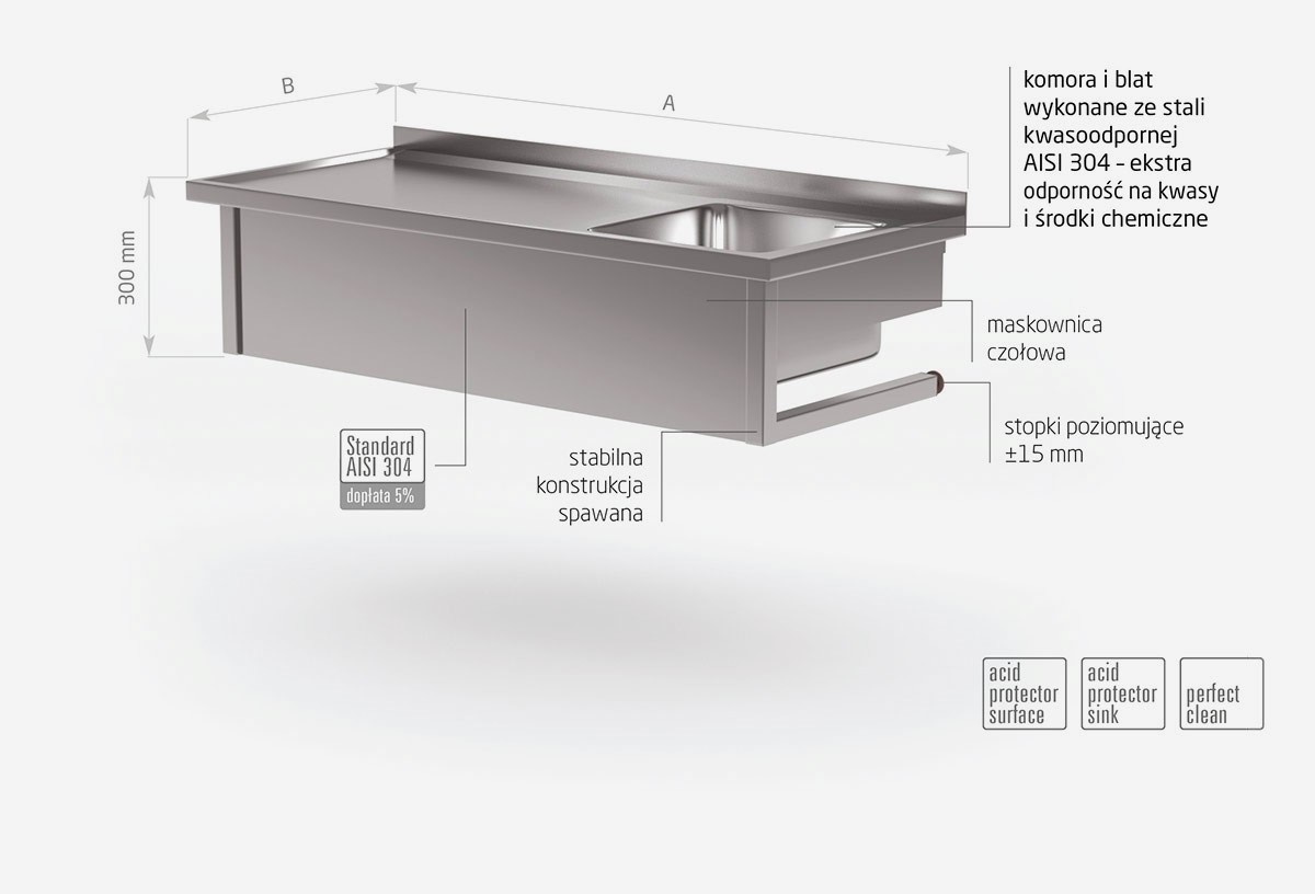 Standardowo nasze wyroby wykonane są ze stali nierdzewnej AISI 430, a elementy narażone na najsilniejsze działanie środków chemicznych i organicznych wykonujemy ze stali nierdzewnej tzw. kwasówki AISI 304. Wszystkie nasze meble mogą być również w całości wykonane z tego materiału, dopłaty do standardu AISI 304 zostały podane każdorazowo przy meblu.