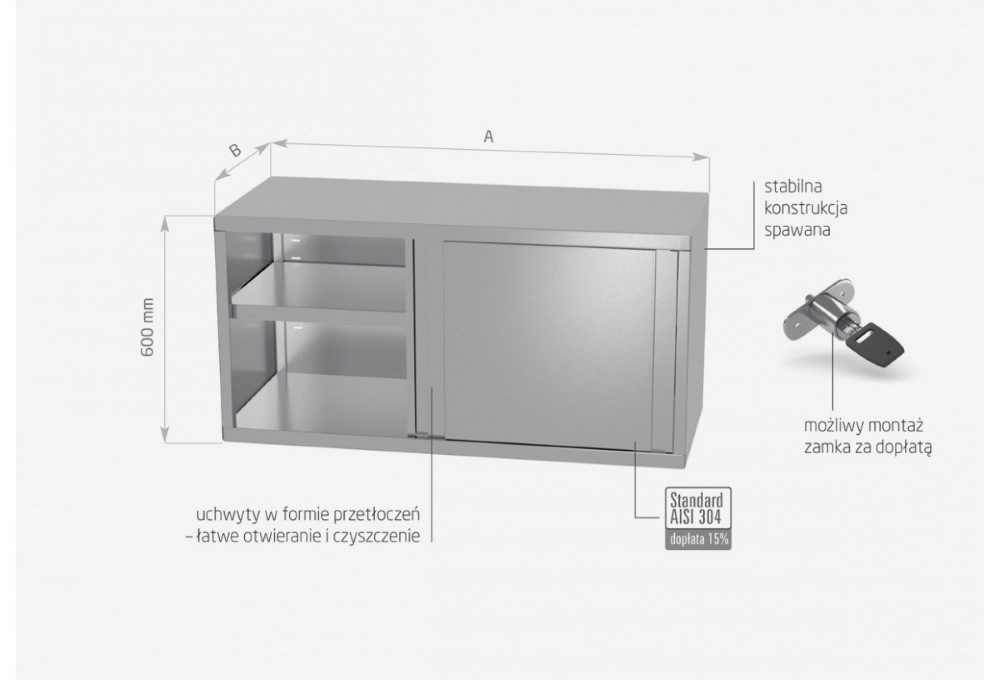 Standardowo nasze wyroby wykonane są ze stali nierdzewnej AISI 430, a elementy narażone na najsilniejsze działanie środków chemicznych i organicznych wykonujemy ze stali nierdzewnej tzw. kwasówki AISI 304. Wszystkie nasze meble mogą być również w całości wykonane z tego materiału, dopłaty do standardu AISI 304 zostały podane każdorazowo przy meblu.