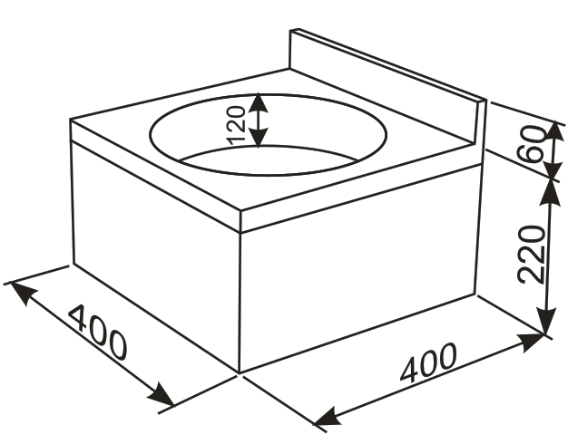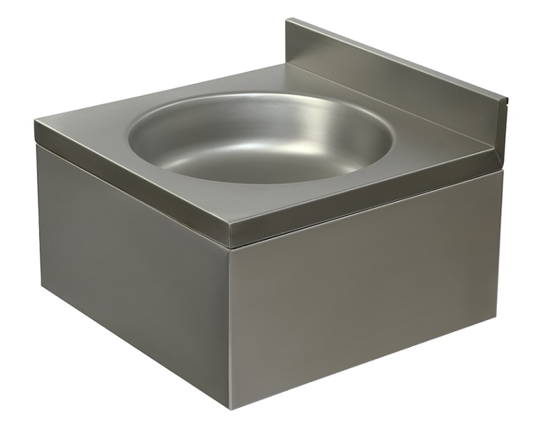 Umywalka ze stali nierdzewnej, jednokomorowa, obudowana. Wymiary: (dł x szer x wys) 400 x 400 x 220 mm. Głębokość komory 120 mm. Grubość blachy: 1,0 mm. W komplecie zestaw mocujący do ściany oraz syfon. Możliwość dostawy z otworem pod baterię w lewym lub prawym narożniku umywalki.